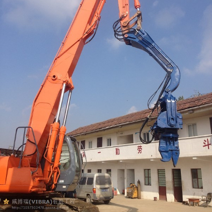 เครื่องตอกเสาเข็ม VIBRA ใช้การสั่นสะเทือนความถี่สูงเพื่อถ่ายโอนพลังงานกลแนวตั้งไปยังเสาเข็ม ลดความแข็งแรงของดินและทำให้บริเวณโดยรอบเป็นของเหลว กระบวนการนี้ช่วยลดแรงเสียดทานระหว่างเสาเข็มและดินได้อย่างมาก ทำให้สามารถเจาะเสาเข็มได้อย่างราบรื่นโดยใช้แรงกดลงของรถขุดและน้ำหนักรวมของค้อนและเสาเข็ม ในระหว่างการถอน การสั่นสะเทือนจะดำเนินต่อไปในขณะที่รถขุดยกเสาเข็มออกจากพื้นดิน พลังงานกระตุ้นที่ต้องการแตกต่างกันไปขึ้นอยู่กับประเภทดิน สภาพ เนื้อหาความชื้น และการก่อสร้างเสาเข็ม