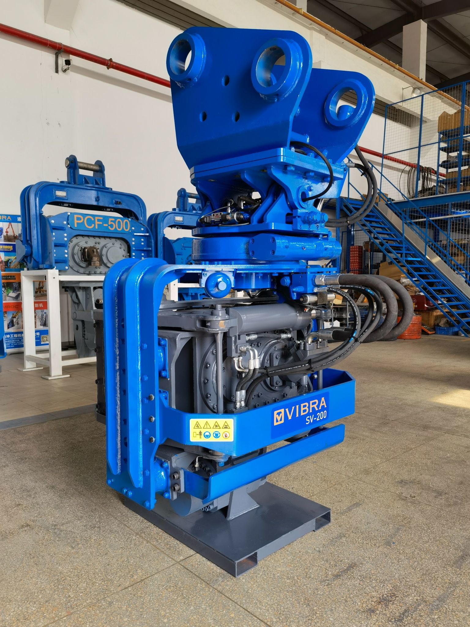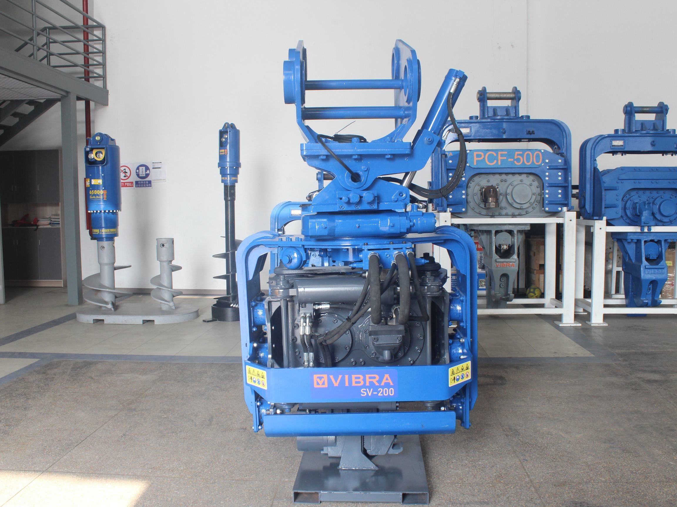 ตัวขับเสาเข็มสั่นสะเทือนแบบไฮดรอลิกใช้ประโยชน์จากการสั่นสะเทือนความถี่สูงที่เกิดจากมอเตอร์และส่งผ่านแรงสั่นสะเทือนไปยังตัวขับเสาเข็มแบบสั่นสะเทือนแบบไฮดรอลิกสำหรับการทำให้ดินเป็นของเหลวและทำลายโครงสร้างเพื่อลดแรงเสียดทานแล้วทำการตอกเสาเข็มหรือเจาะเสาเข็มจากดินด้วยเครื่องขุดดินการสั่นสะเทือนความถี่สูงนั้นขับเคลื่อนด้วยมอเตอร์ไฮดรอลิกของรถขุด