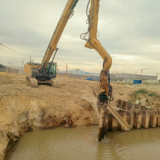 เครื่องตอกเสาเข็มแผ่นเหล็กสำหรับงานหนัก | ออกแบบติดตั้งบนรถขุด | การสั่นสะเทือนความถี่สูง