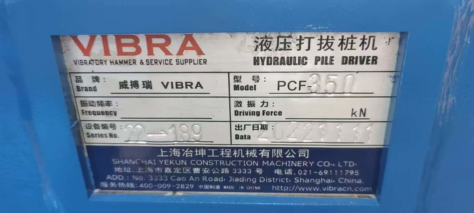 | HS Code | 8430100000 | Type | Hydraulic Vibrating Hammer |