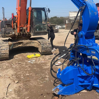 เครื่องตอกเสาเข็มระบบสั่นแบบไฮดรอลิกใช้ประโยชน์จากการสั่นสะเทือนความถี่สูงที่เกิดจากมอเตอร์และส่งแรงสั่นสะเทือนไปยังเครื่องตอกเสาเข็มระบบสั่นแบบไฮดรอลิกเพื่อให้ดินโดยรอบกลายเป็นของเหลวและทำลายโครงสร้างเพื่อลดแรงเสียดทานจากนั้นจึงทำการตอกเสาเข็มหรือเจาะเสาเข็มโดยขุดดินขึ้นมาการสั่นสะเทือนความถี่สูงนั้นขับเคลื่อนโดยมอเตอร์ไฮดรอลิกของรถขุด