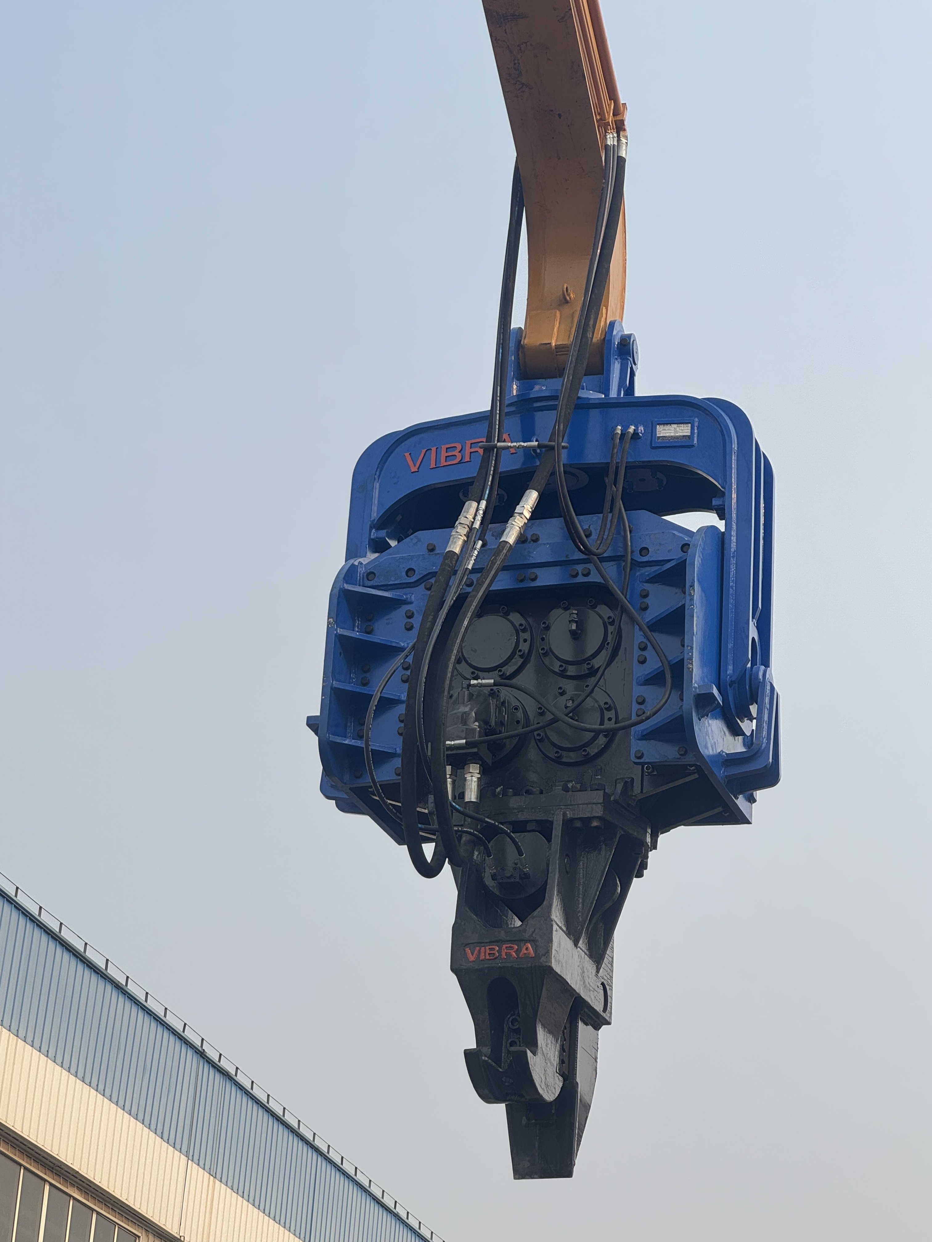 The VIBRA Four Eccentric Pile Driver represents the pinnacle of hydraulic piling technology, designed for the most challenging foundation projects. Its unique four-eccentric rotor system generates immense, balanced forces for driving and extracting piles with unmatched power and control. Built for durability and maximum uptime, it is the go-to solution for contractors who cannot afford compromise on performance or reliability when working with large-diameter piles (up to 1000mm) in tough geological conditions.